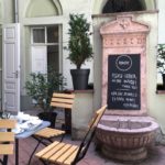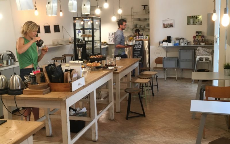 Na rušné Múzeum körút se nachází ve dvoře nenápadně umístěná kavárna Fekete. Podle místních i cestovatelů je na TripAdvisoru hodnocená jako jedna z nejlepších. Na první pohled nás překvapilo, že je v ní tak málo lidí. Pak nám ale došlo, že je po poledni ve všední den.