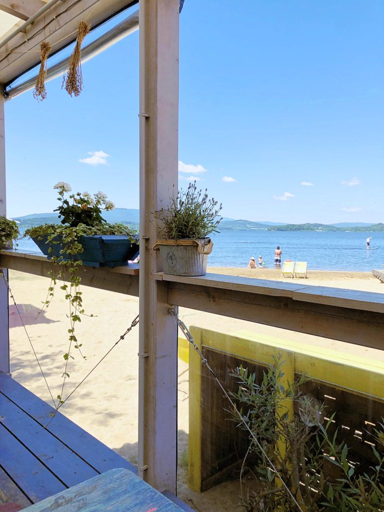 Na Lipno jsme vyrazili na motorce. Z Prahy nám cesta trvala tři hodiny. Autem to bude něco málo přes dvě. Petr vybral obec Černá v Pošumaví, protože tam jako dítě jezdil s rodiči a protože je tam relativně živo. Najdete tu vyhlášený plážový bar Windy Point a okolo několik restaurací, kam si můžete zajít na snídani nebo na večeři. My dorazili dva dny před zahájením sezóny, ve středu 26. června, a protože jsme přijeli až po deváté, v žádné restauraci v okolí už otevřeno neměli (jak bláhové je, myslet si, že tu v devět bude fungovat aspoň jedna jediná restaurace). Jenom ve Windy Pointu ještě nezavřeli, měli totiž do deseti. Dali jsme si pivo, moje oblíbený víno s kolou a něco na způsob mexických tortill jenom v téměř nepoživatelné variantě. Ale když je hlad, sníte všechno. Aspoň já určitě. Podotýkám, že pokud čekáte ceny konkurující českému venkovu, tak se připravte na to, že tady vládnou ceny hodné nejužšího centra Prahy.