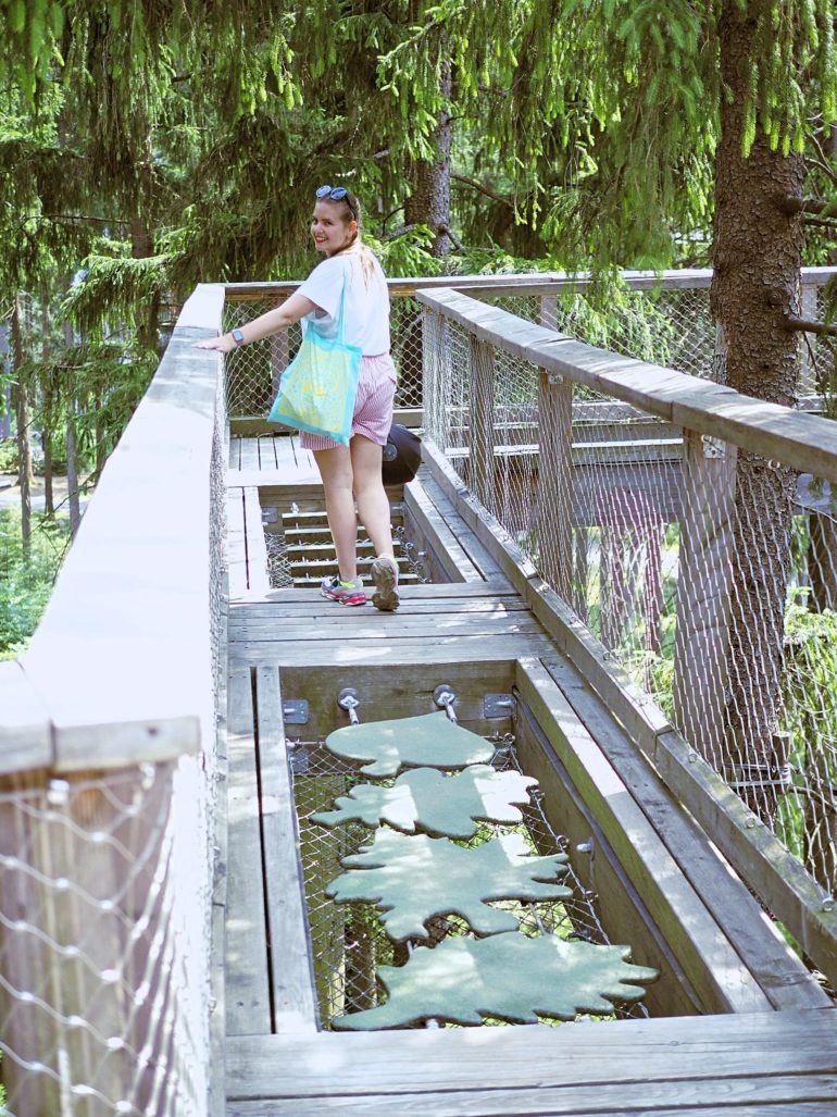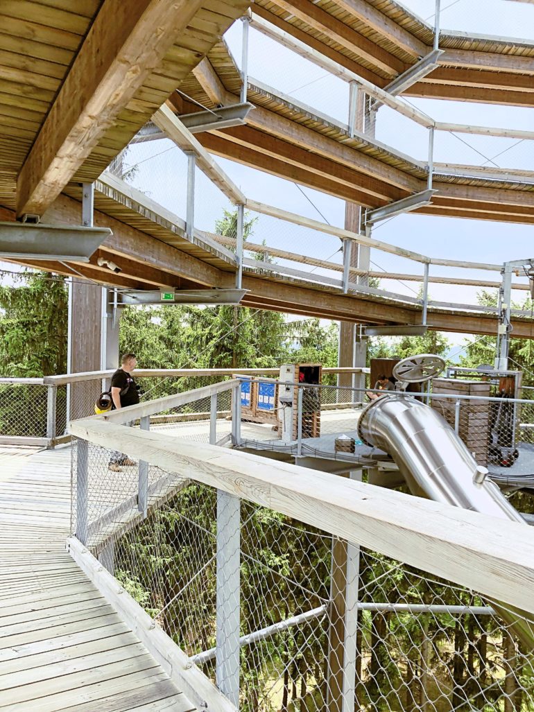 Pokud s sebou přeci jen máte děti, cestou na stezku narazíte na Království lesa. Najdete tu lanovku, provazové sestavy, prolézačky, stromová městečka, pískoviště, kolotoče i skluzavky. Tam jsme ale nešli. Bez dětí bychom tam vypadali dost nepatřičně.