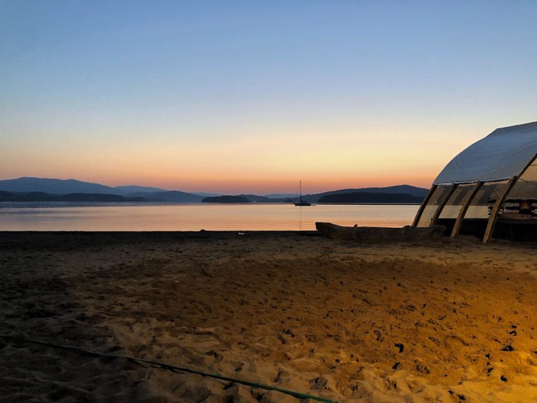 V pátek, 28. června začíná na Lipně sezóna a je to znát. Přijíždějí desítky nových kempařů. Všude je rušno ještě o půlnoci, kdy dorazí ti největší opozdilci. Windy Point má ale přes celou sezónu otevřeno až do půlnoci. Ráno je i na pláži plno a tak zjišťujeme, že je nejvyšší čas odjet. Na druhou stranu čím později na Lipno o prázdninách přijedete, tím bude voda teplejší. Dá-li počasí. Ale upřímně, když jsem tam vlezla já v červnu, zvládnete to taky. Věřte mi. Co mi ale vadilo víc než chladnější voda, jsou studené noci. I když je přes den téměř třicet stupňů, v noci bylo patnáct. Tudíž doporučuju teplejší oblečení. Hlavně pokud se chystáte pod stan nebo do chatek. A taky sem jezdí hodně německých a rakouských turistů, a tak je tu němčina druhým `úředním` jazykem. Uslyšíte ji úplně všude a vysvětluje to i fakt, proč je tady tak draho. Pro Němce nebo Rakušany je to totiž pořád hodně levná dovolená a tak není důvod držet ceny nízko.